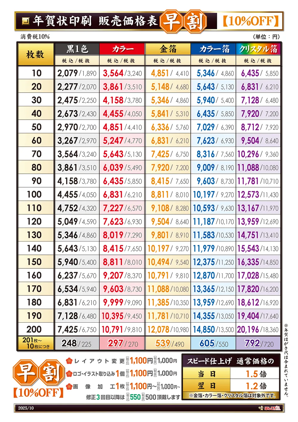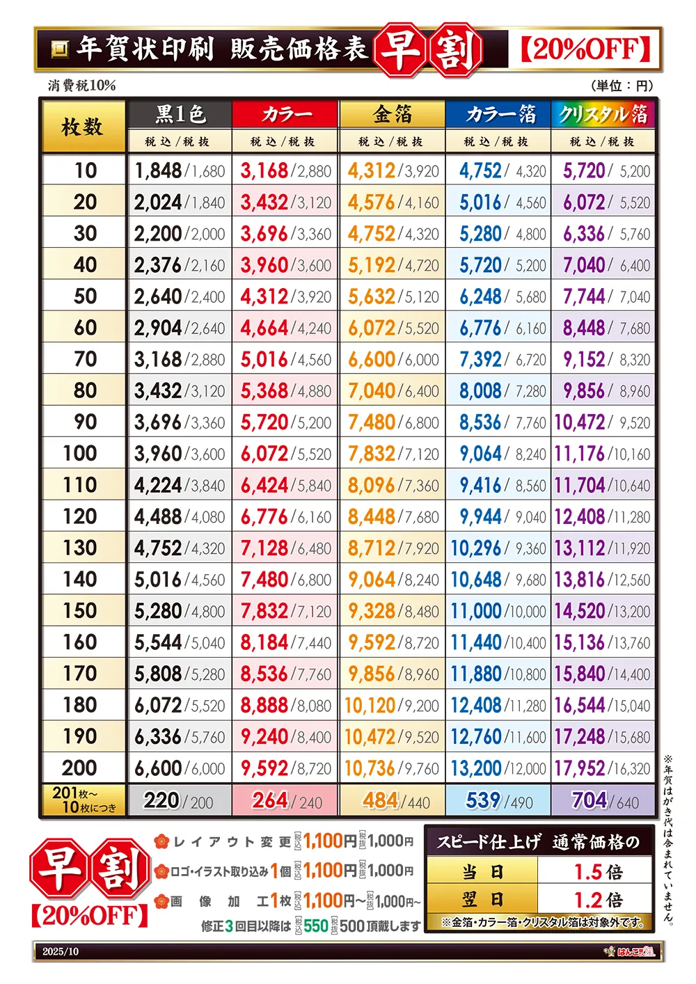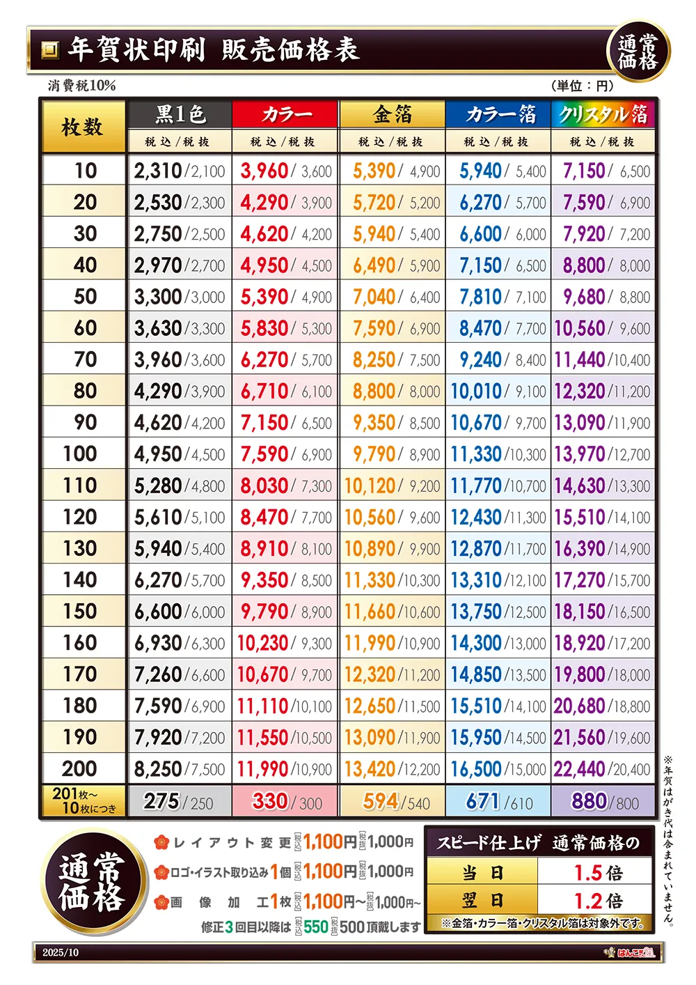 2026年版年賀状価格表